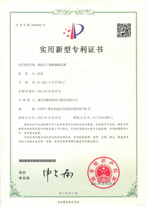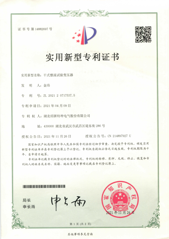 我公司擁有自主研發(fā)的多項專利技術(shù)。其中電氣試驗設(shè)備專利四項,變壓器類制造專利十項,調(diào)壓器制造專利五項,其他專利十余項,以此為核心技術(shù)開發(fā)出多種新產(chǎn)品。
